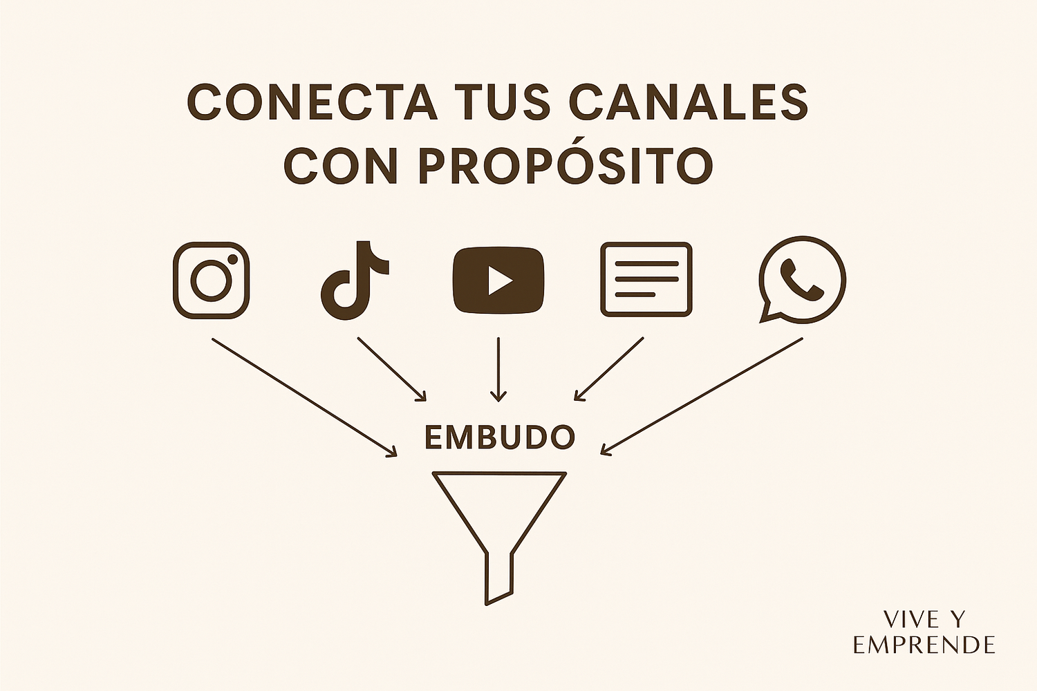 En Vive y Emprende usamos tonos beige, dorado y gris, que transmiten profesionalismo y crecimiento.